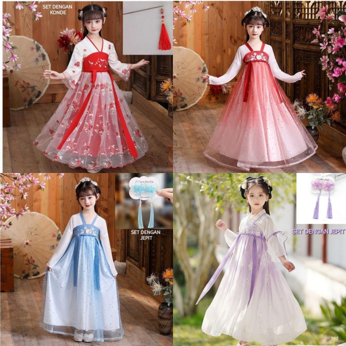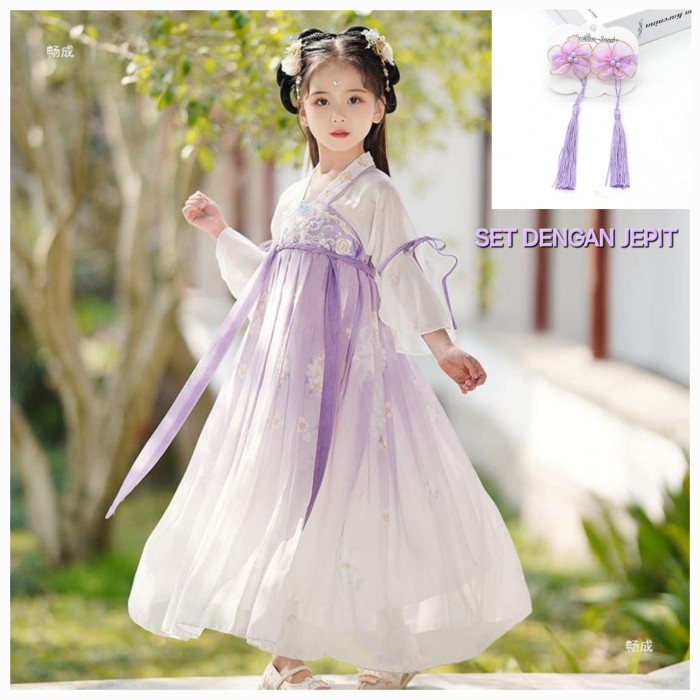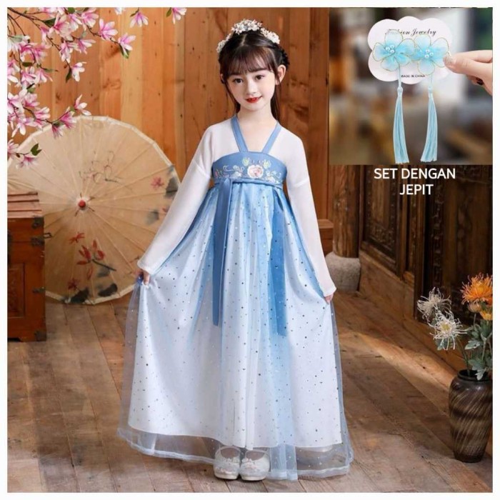DRESS ANAK PEREMPUAN TRADISIONAL HANFU NEW SPRING SUPER IMORTAL - BIRU, 110CM