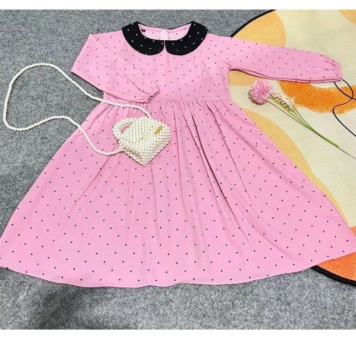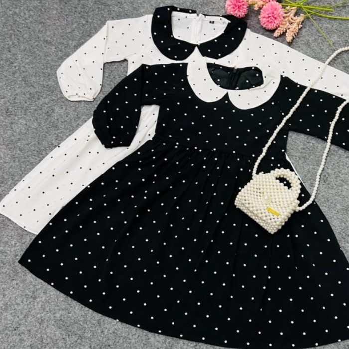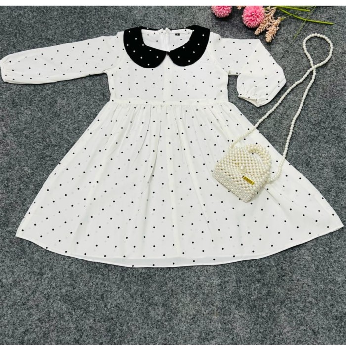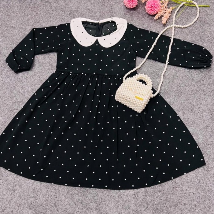 DRESS ANAK PEREMPUAN LENGAN PANJANG POLKADOT WEDNESDAY ADDAMS - PUTIH, S