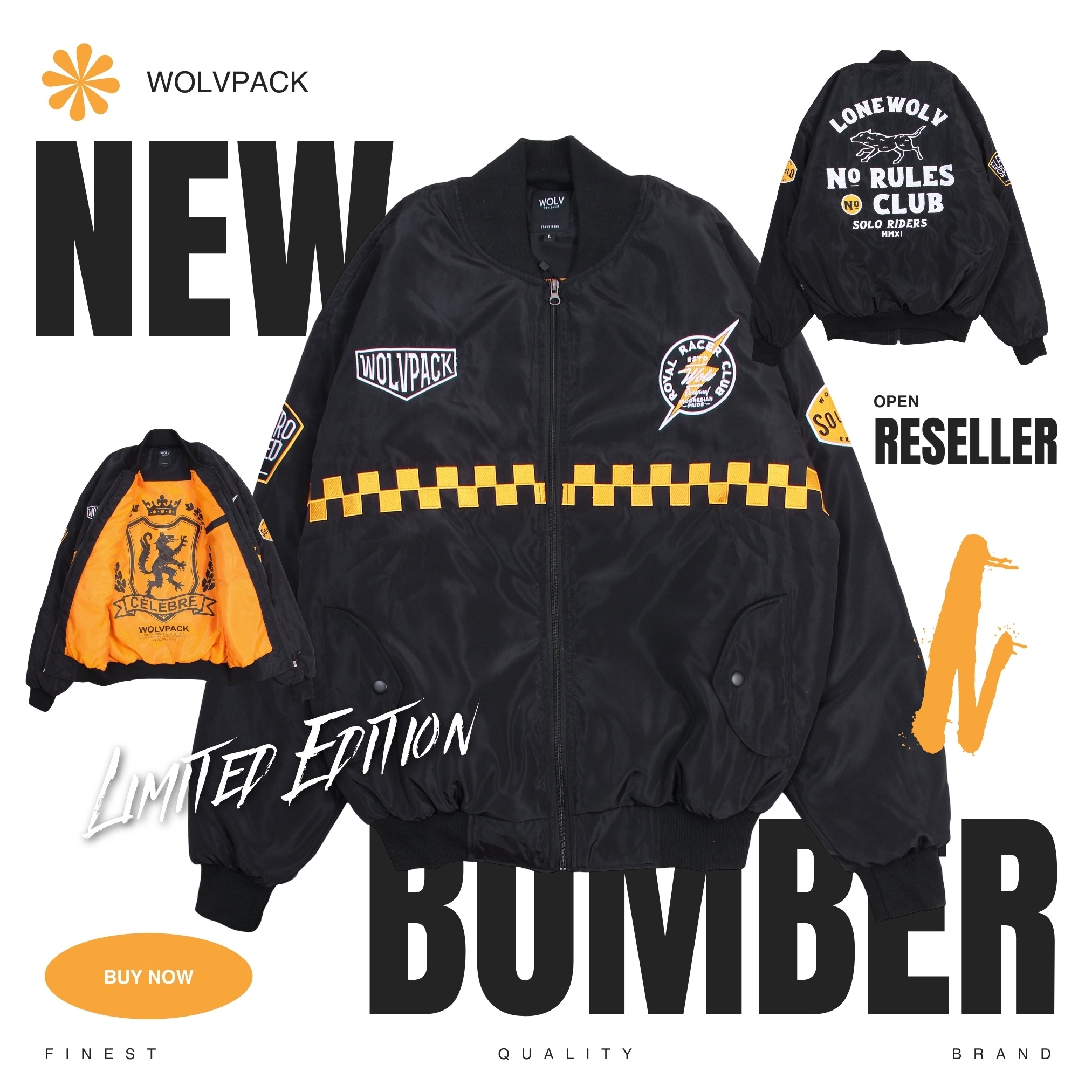 Jaket Bomber Pria Original Wolv Jaket Bomber Lonerider Jaket Motor Jaket Racing Club Adreena Store