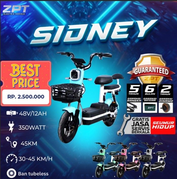 Sepeda Listrik ZPT Sidney Electric uwinfly pasifik god Bike Ber Hitam