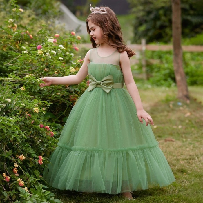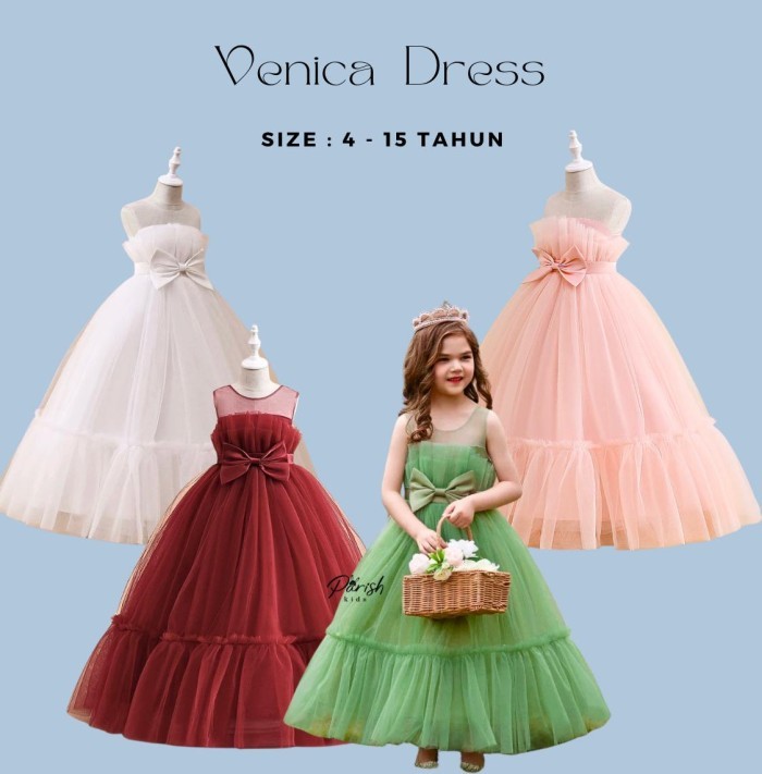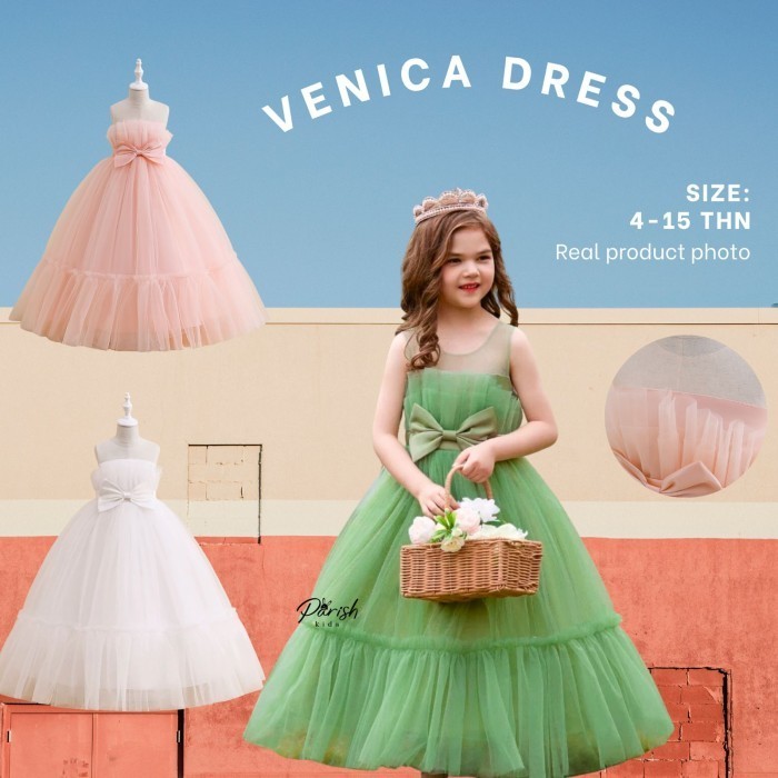 VENICA TOSCA GREEN PINK WHITE LONG DRESS/ DRESS PESTA ANAK - PINK, 170 (14-15 THN)