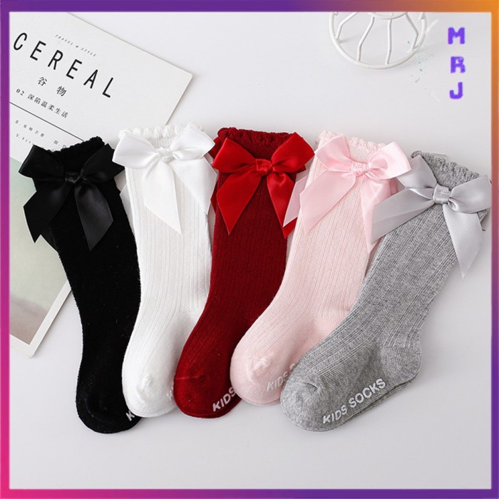 MRJ KAOS KAKI ANAK BAYI 6821 SARUNG KAKI PANJANG BABY SOCKS MODEL PITA - ABU MUDA S