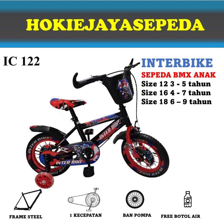 NEW SEPEDA ANAK BMX INTERBIKE POLOS BAN POMPA usia 3-8 TAHUN BONUS BOTOL AIR Terlaris