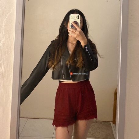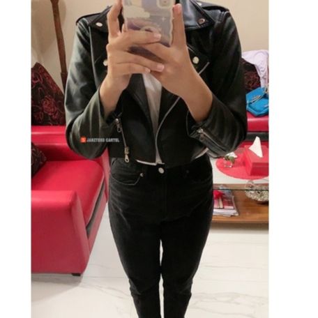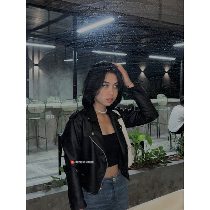 JNK x LATI - Jaket Semi Kulit Sintetis Viena Premium Crop Top Women Black Hitam Faux Synthetic