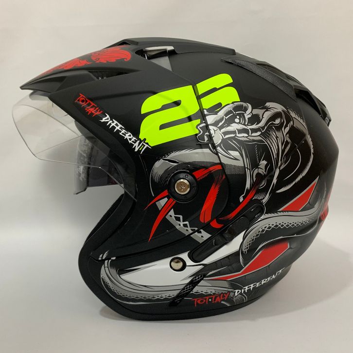 Helm JP 7 Snake 26 Hitam Doff SNI Dewasa Motif Dua Kaca - Double Visor Terlaris