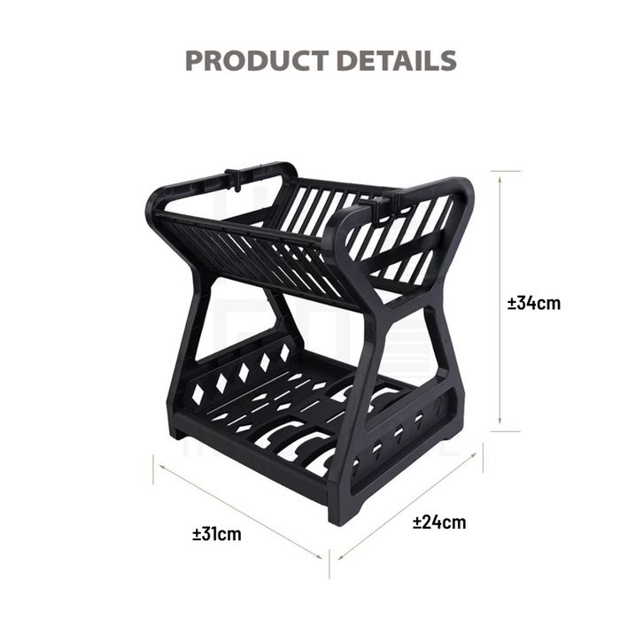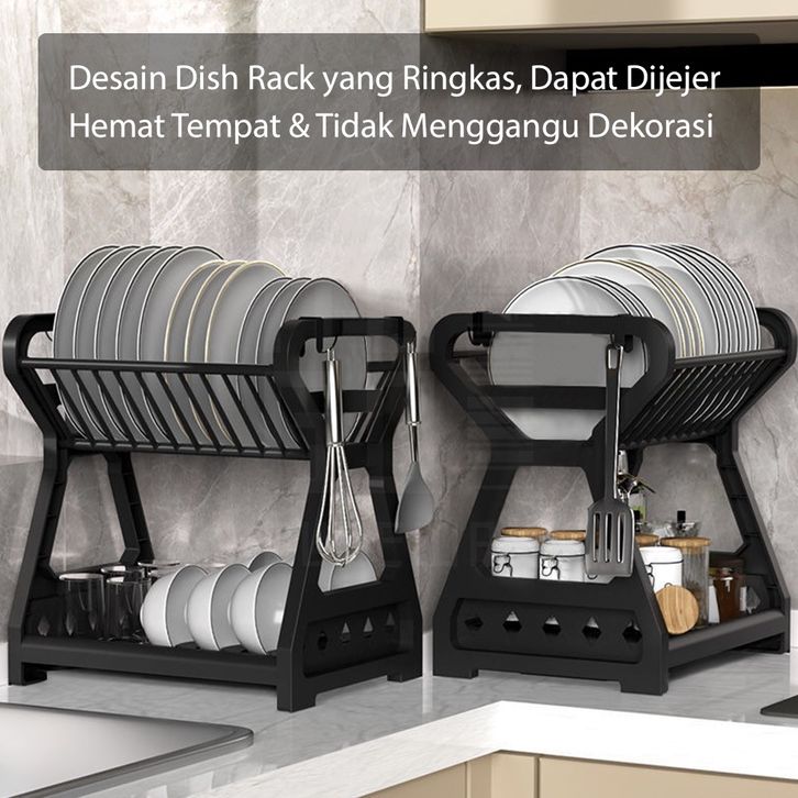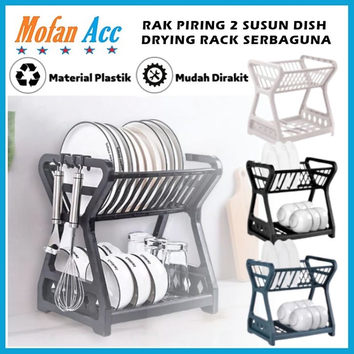 Rak Piring Plastik 2 Susun Wadah Tempat Pengering Susun Piring Mangkok Gelas Penyimpanan Organizer Dapur Minimalis