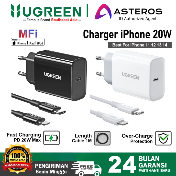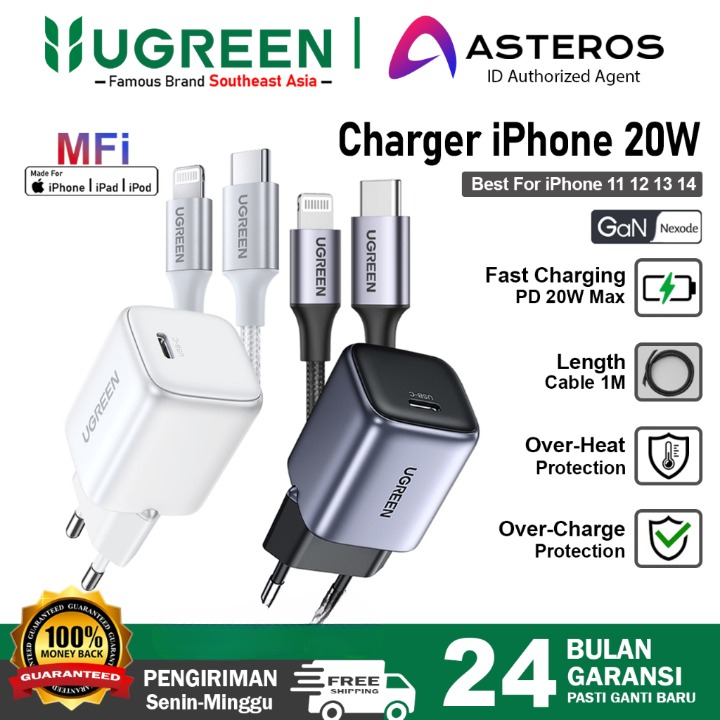 CHARGER IPHONE 11/CHARGER IPHONE 13/CHARGER IPHONE UGREEN/MFI PD TYPE C TO LIGHTNING FAST CHARGING 20W GAN
