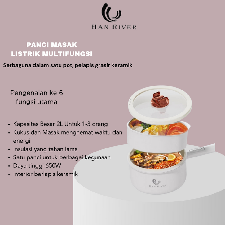 PANCI LISTRIK ANTI LENGKET MULTIFUNGSI SERBAGUNA HAN RIVER MURAH 2L HRDZG02 PORTABLE TERBARU TERLARIS