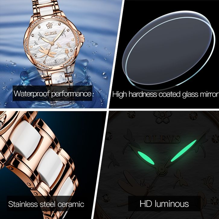 OLEVS Jam Tangan Automatic Wanita Original Anti Air Kecil Keramik Rantai Women Watch