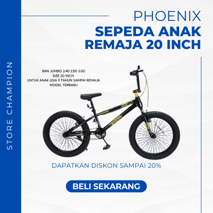 SEPEDA ANAK LAKI LAKI BMX MORISON PHOENIX 20 INCH SEPEDAH ANAK REMAJA 9 TAHUN BAN JUMBO 2.40 2.50 3.0 BEST SELLER