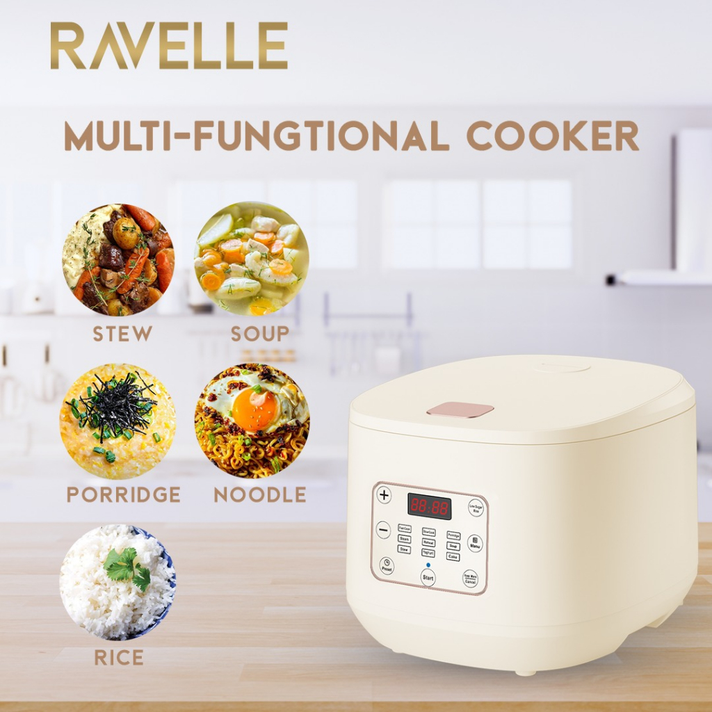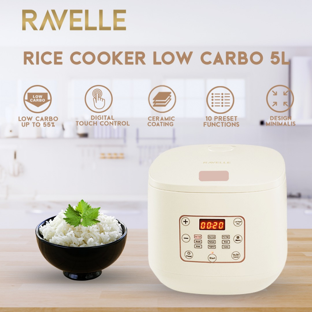 RAVELLE Digital Rice Cooker Low Carbo 1.8 Liter Nasi 5 Liter Penanak Nasi Low Watt- Cream Gold