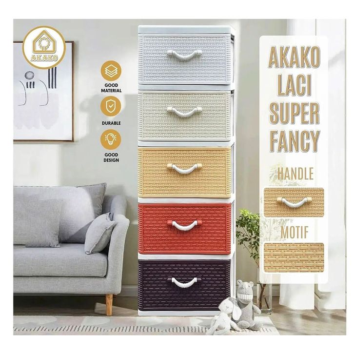 Lemari Laci Plastik Motif Rotan Susun Full Colour Lemari Mainan Penyimpanan Serbaguna Multifungsi Perlu Dirakit