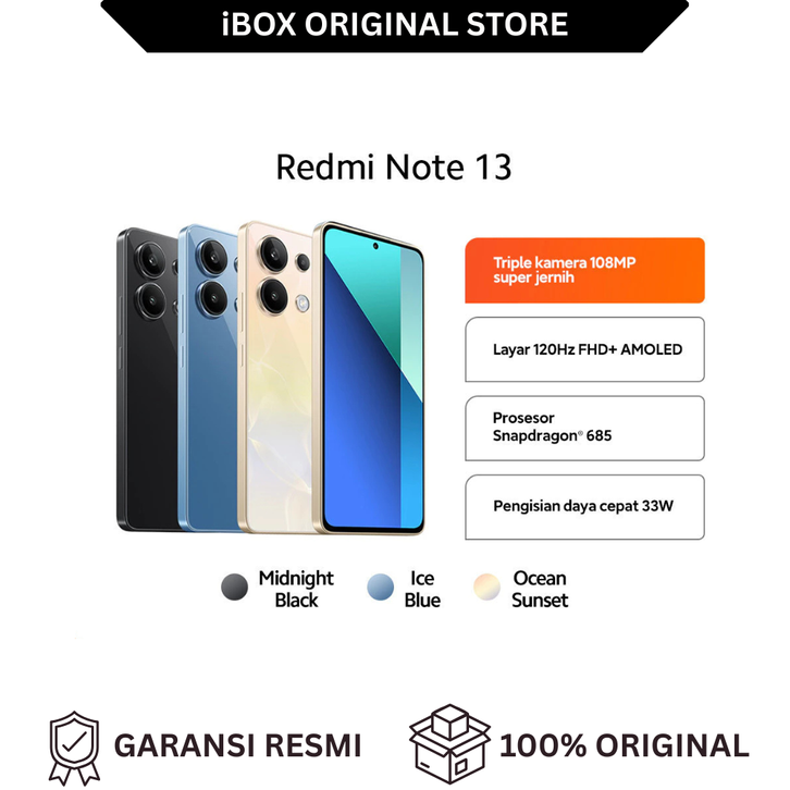 XIAOMI REDMI NOTE 13 (8GB/128GB) (8GB/256GB) | LAYAR 120 HZ | FHD+ AMOLED | TIGA KAMERA 108 MP | SNAPDRAGON 685