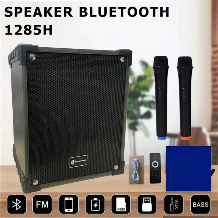 BRAIN POWER PORTABLE QS-1285H DOUBLE SPEAKER FULL BASS SQUARE FREE 2 MICROPHONE WIRELESS