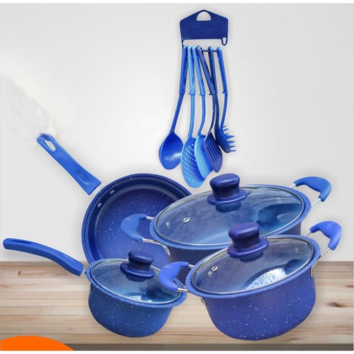 Panci 13 Set Cookware Anti Lengket + Tutup Kaca Set Peralatan Masak Lengkap + Free Spatula Premium Quality