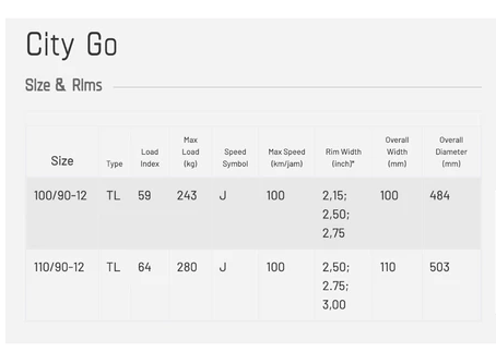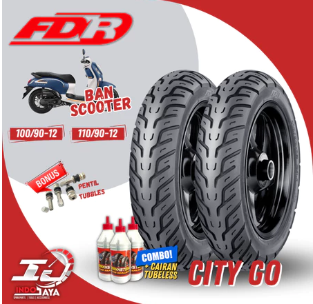 BAN LUAR TUBELESS FDR CITY GO / CITYGO RING 12 (100/90-12 - 110/90-12) BAN DEPAN BELAKANG MOTOR SCOOPY / SCOOTER /
