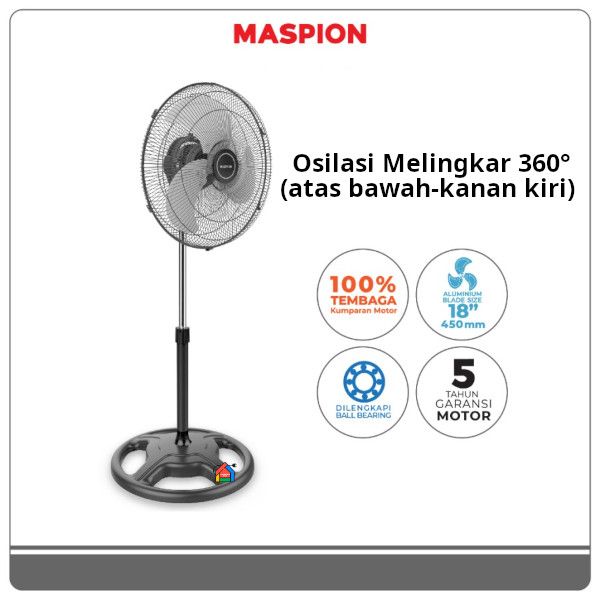 Kipas Angin Power Fan Maspion PW 1817 S Osilasi Penuh (18 inch) / Stand Fan Berdiri Maspion Baling Besi PW1817 S