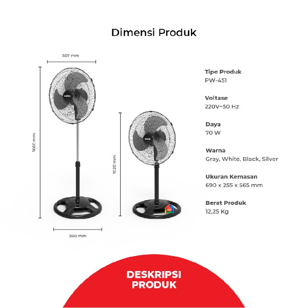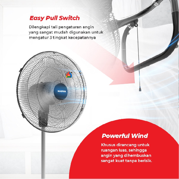 Kipas Angin Power Fan Maspion PW 451 (18 inch) / Stand, Desk, & Wall Fan Maspion Baling Besi 3 IN 1 PW451
