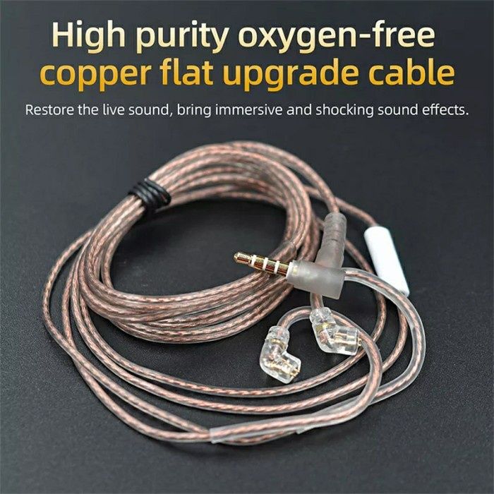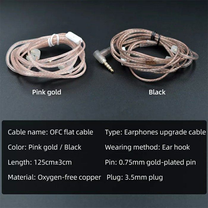 NEW KZ WITH MIC DOUBLE LINE KABEL HEADSET SILVER HIGH PURITY OXYGEN FREE COPPER REPLACEMENT