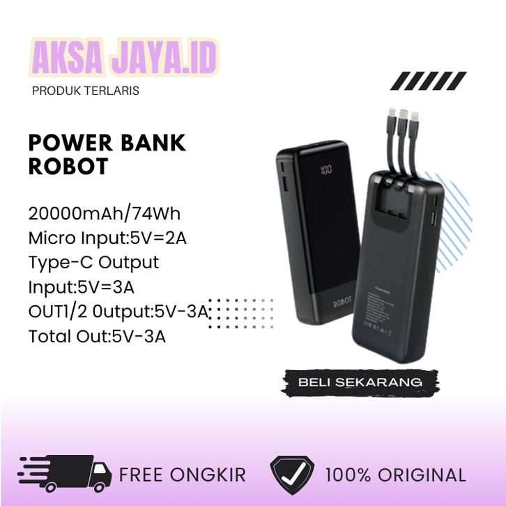 Power Bank Robot Original Fast Charging 20000mah Mini All Type Bukan Anker Vivan Xiaomi Termurah Gratis Ongkir