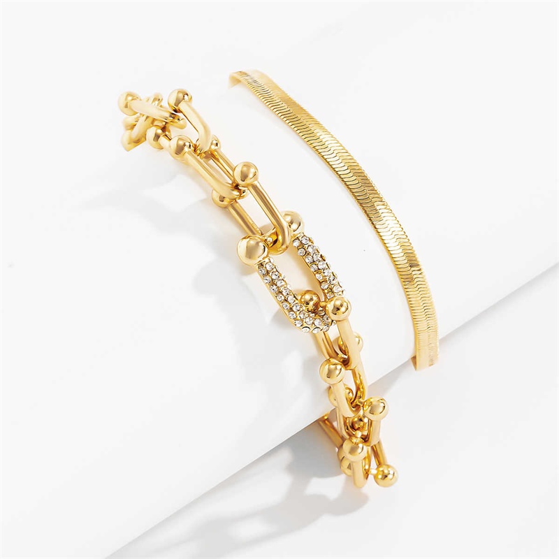 Ge lang U -berbentuk Berlian Rantai Titanium Wanita Anti Karat Luntur Lapis mas 18Free Box