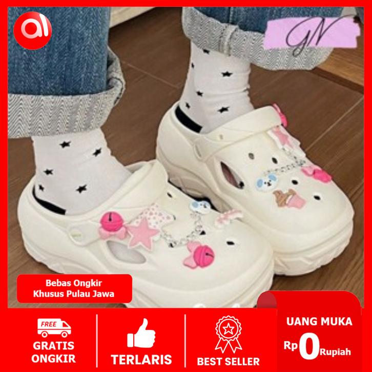 Sandal baim eva rubber sandal fuji tinggi 8 cm antislip import jibbitz 3d cartoon rubber