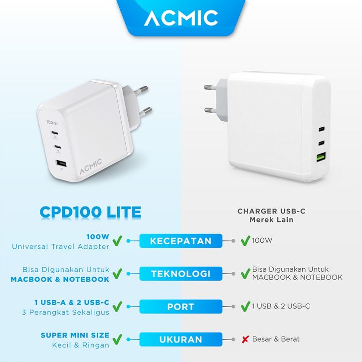 ACMIC CPD100 GaN7 PRO 100W Wall Desktop Charger Adaptor Laptop MacBook Original Official Store Kepala Casan