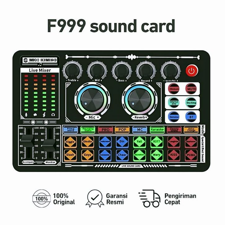 Sound Card Paket Sound card F999 + MKF-01 Plus Mic Wireless alat Live streaming maupun karaokean