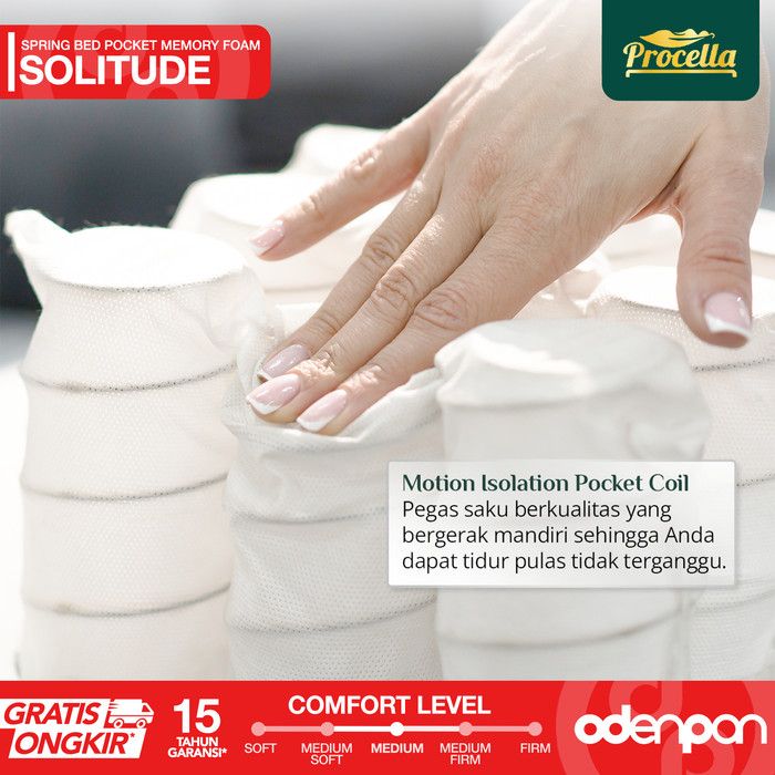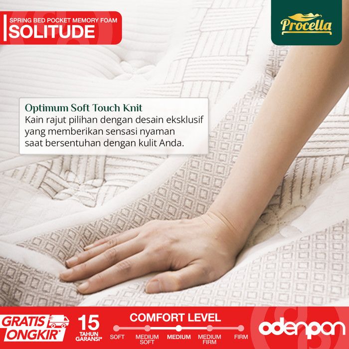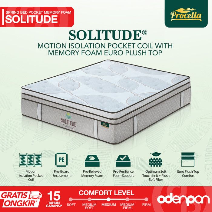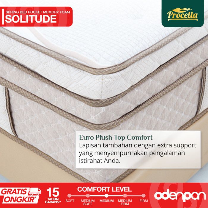 PROCELLA Kasur Pocket Spring Bed Mattress Memory Foam Plush SOLITUDE - Kasur Saja 100 x 200 cm