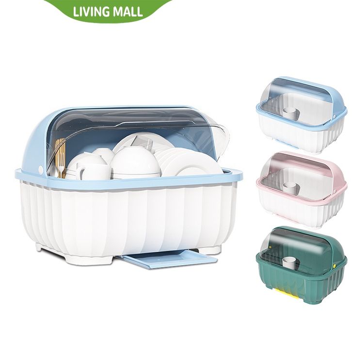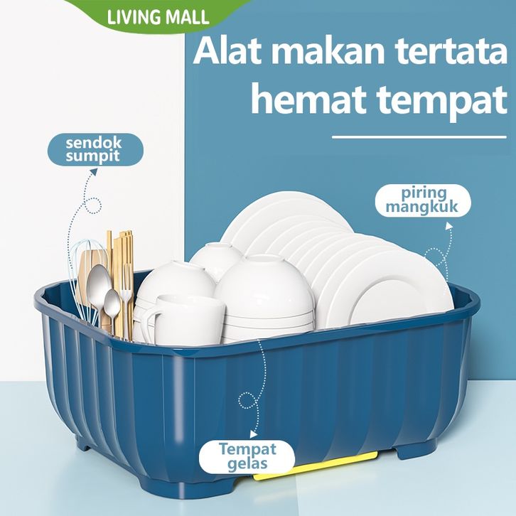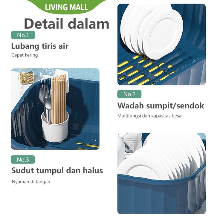 Rak Piring Tertutup Plastik Tempat Piring Sendok Minimalis Pengering Mini Tutup Wastafel Multifungsi Perlu Dirakit