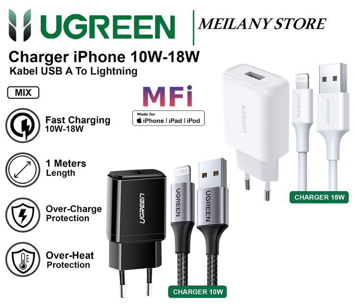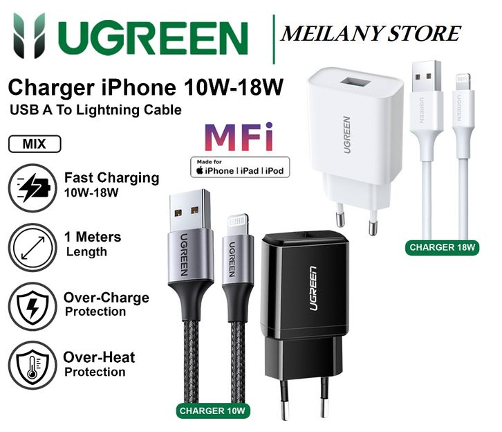 UGREEN Charger iPhone MFi 5 6 7 8 X Xr Xs USB Lightning Fast Charging 10w 18w 20w CASAN IPHONE APPLE