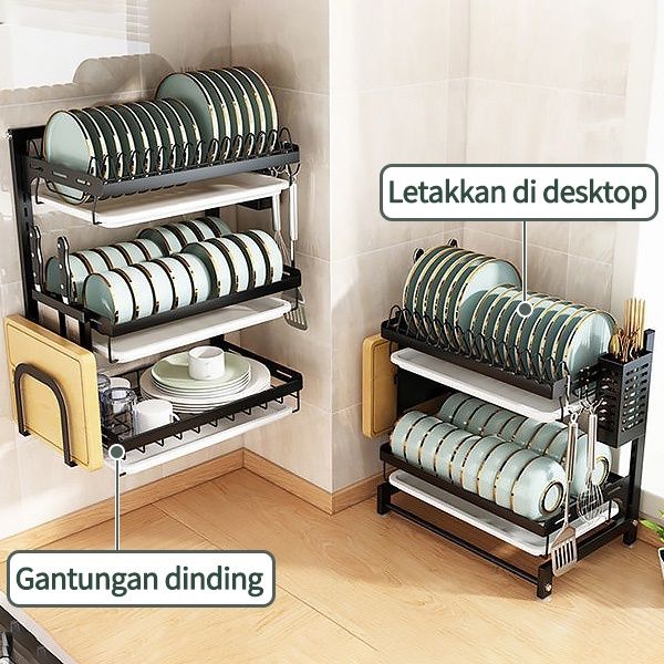 Rak Piring Dindin Dapur Gantung Peralatan Makan Stainless Steel Rak Penyimpanan Gantung Minimalis Kokoh Tahan Lama