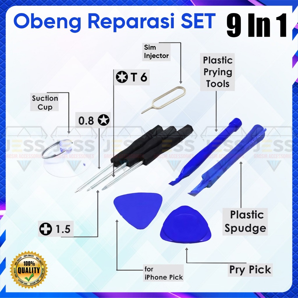 ALAT PERALATAN BUKA LCD HP DAN GANTI BATERAI IPHONE ANDROID OBENG SET & TOOLS REPAIR PEMBUKA 9 IN 1