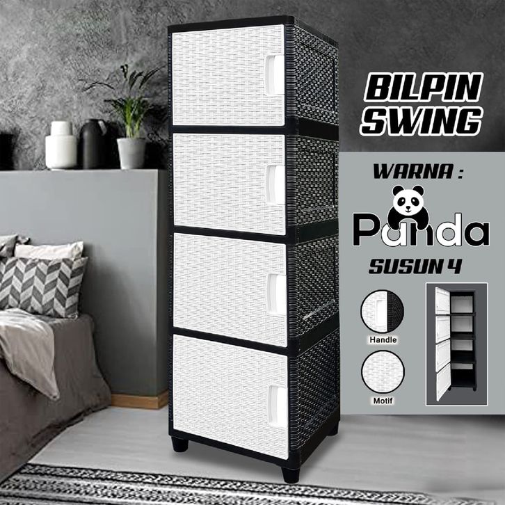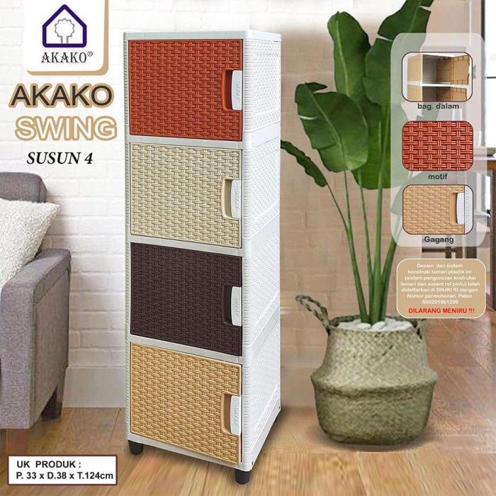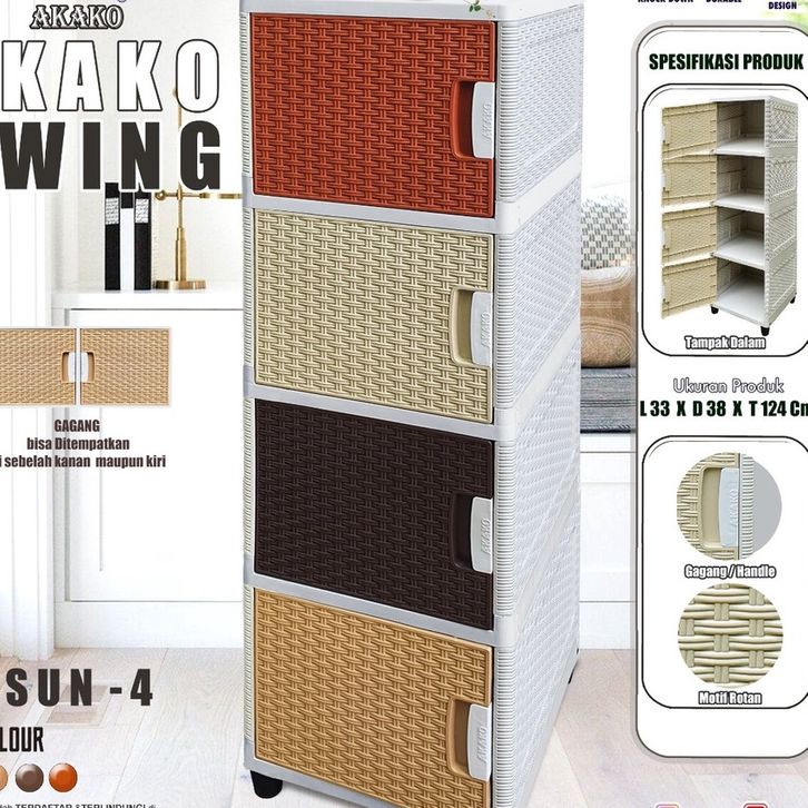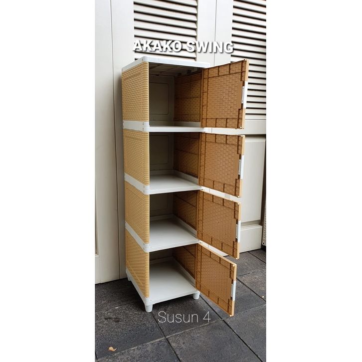 Lemari Pakaian Minimalis Swing 4 Susun Lemari Plastik Motif Rotan Lemari Buku Mainan Tempat Penyimpanan Serbaguna Stylis