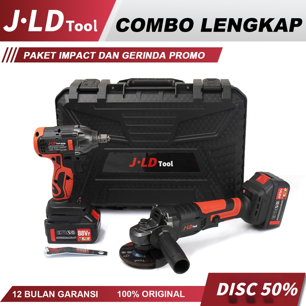 JLD Impact Wrench 2 Pcs 88Vf Cordless Brushless 4 inch Angle Grinder 350N.m Baterai Original