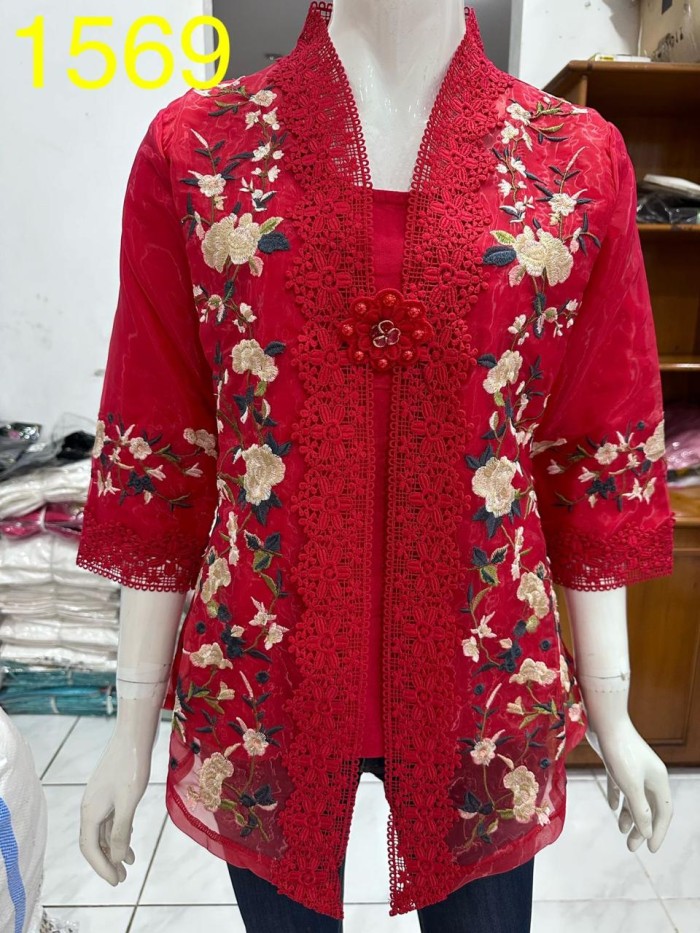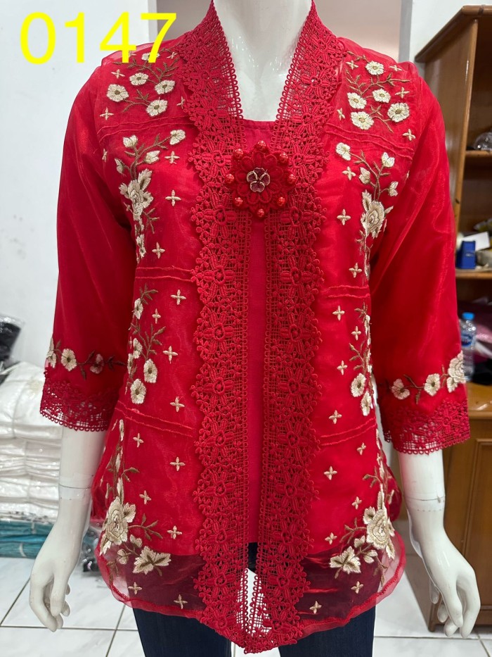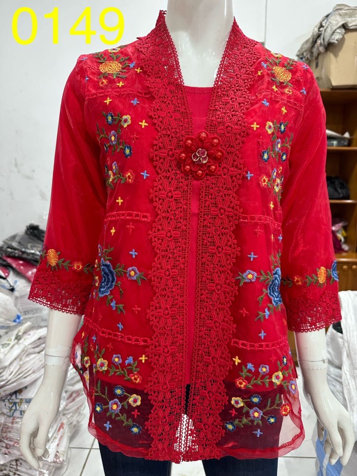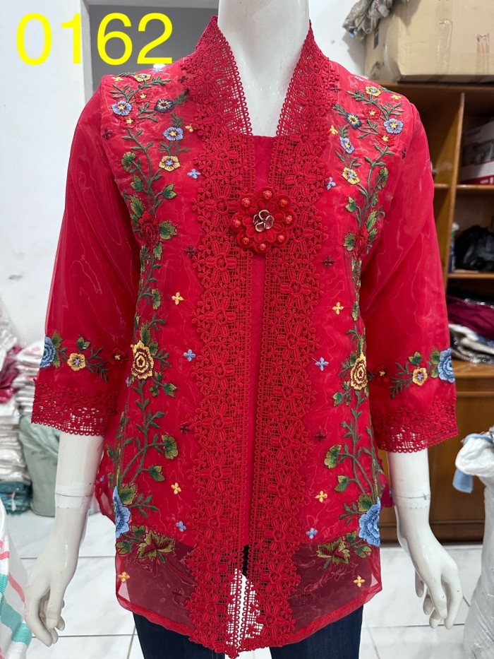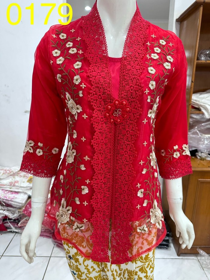 0179 KEBAYA ROMPI ORGANDI ALEXUEZ PREMIUM BRUKAT /KEBAYA ENCIM BORDIR MERAH - 0179 MERAH, S