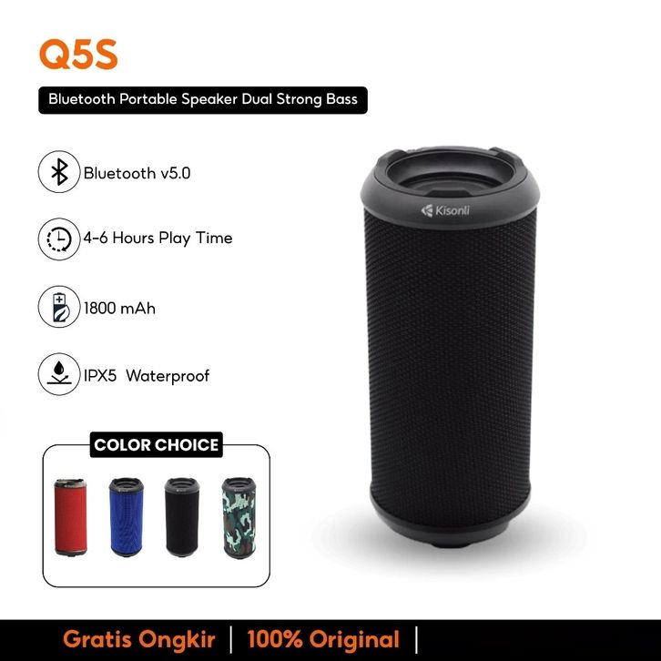 KISONLI Speaker Bluetooth Portable Q5S Dual Bass Support FM Radio, TF, AUX