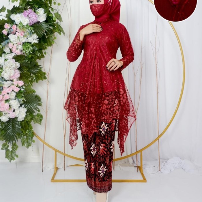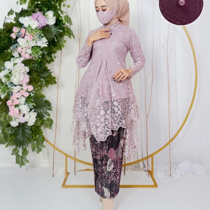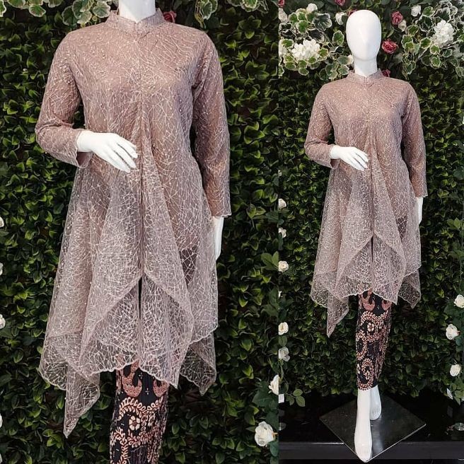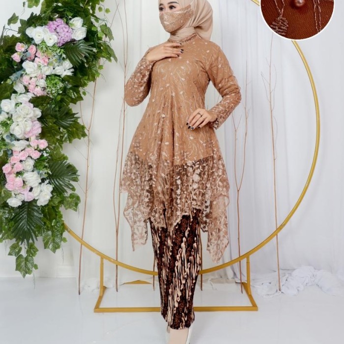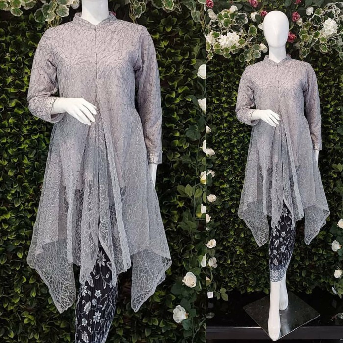 SET KEBAYA PESTA MEWAH TINA ORIGINAL BRAND BY OCEAN KEBAYA - ABU-ABU, L