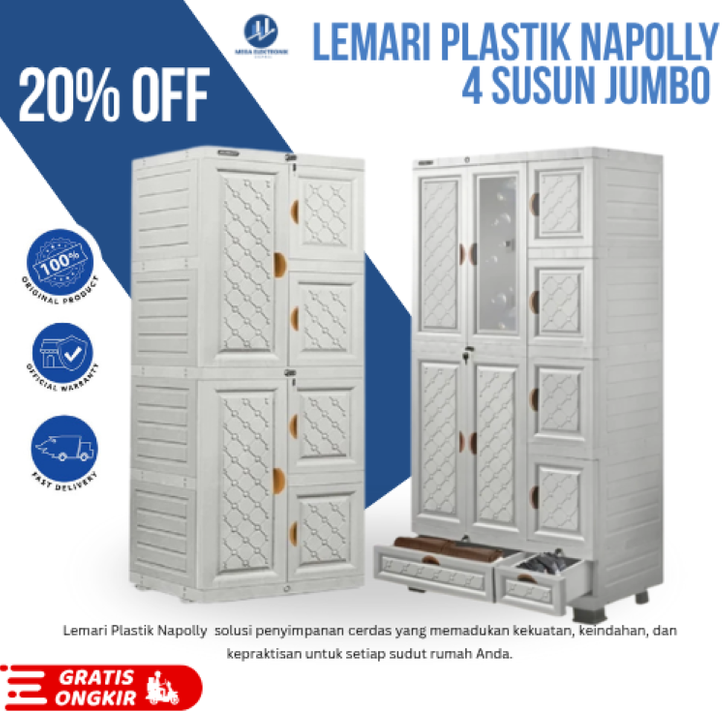 Lemari Plastik Berkualitas 4 Susun Jumbo Lemari Plastik Napolly Olastik Gantung MIDICAB-3408/4408/5412 DC High Quality
