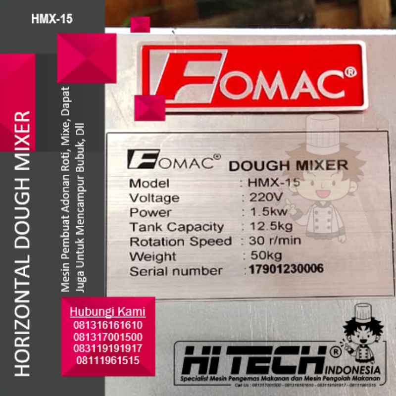 HORIZONTAL DOUGH MIXER 15 LITER FOMAC HMX-15 PENGADUK ADONAN MIE ROTI MIKSER HORISONTAL 15L HMX 15