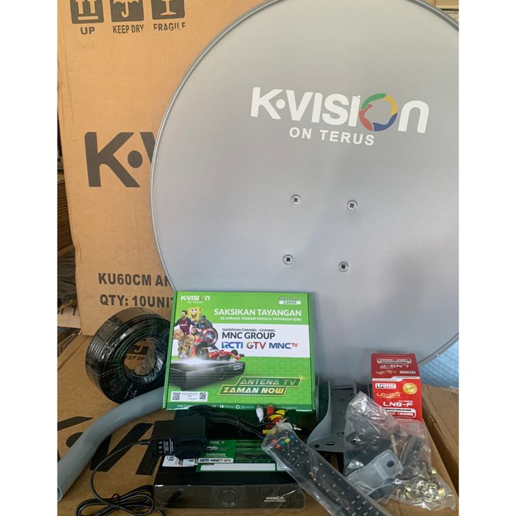 Paket Parabola Mini 60cm Receiver Kvision Bromo C2000 Kabel RG6 Panjang 15-20m LnbF KU-Band Single Output Stylish