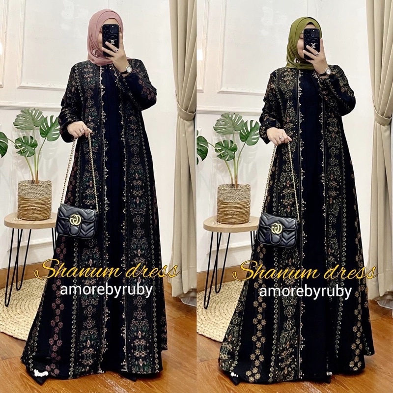 Shanum Dress Amore By Ruby Motif Bunga Bahan Prada Crepe Gamis Muslim Dress Abaya All Size