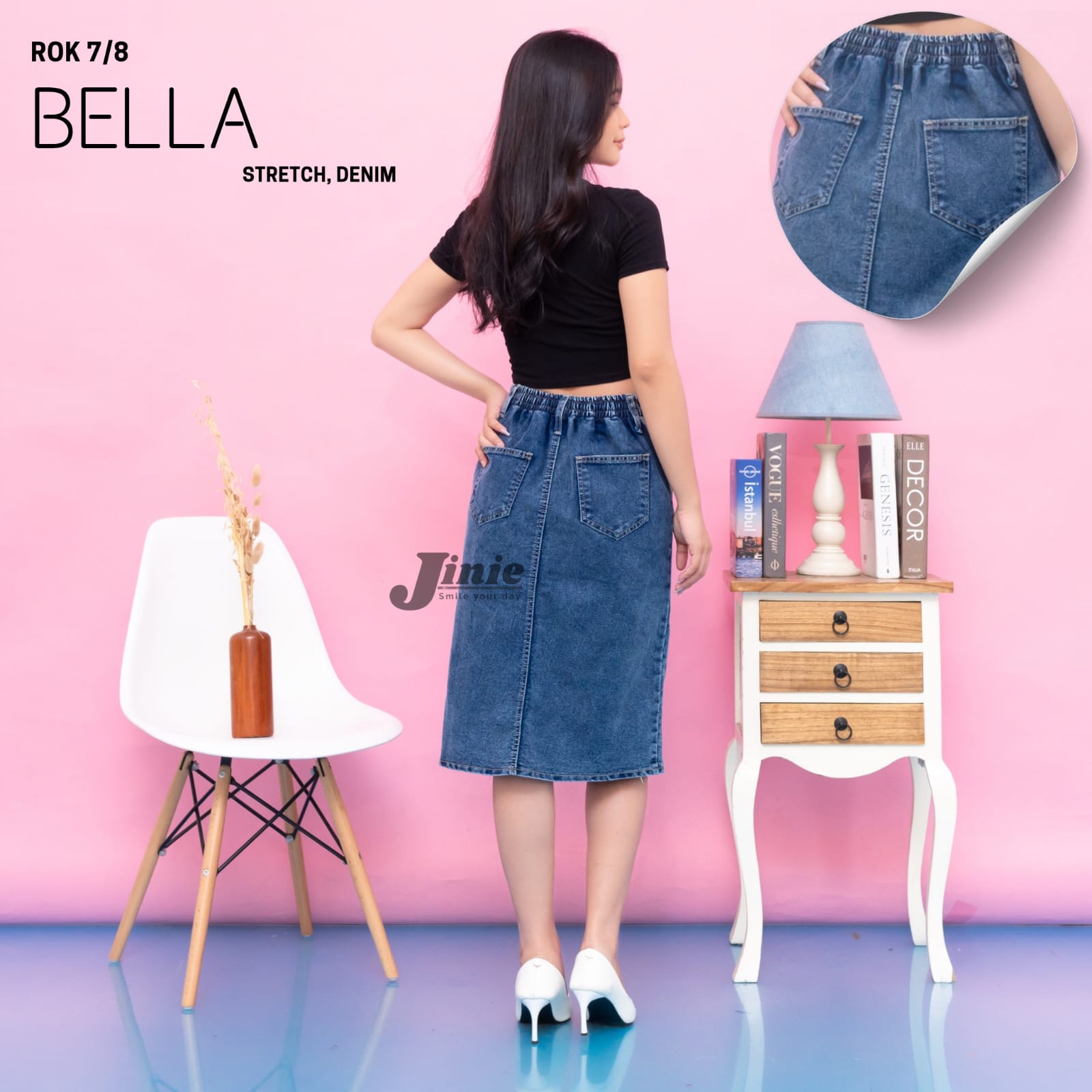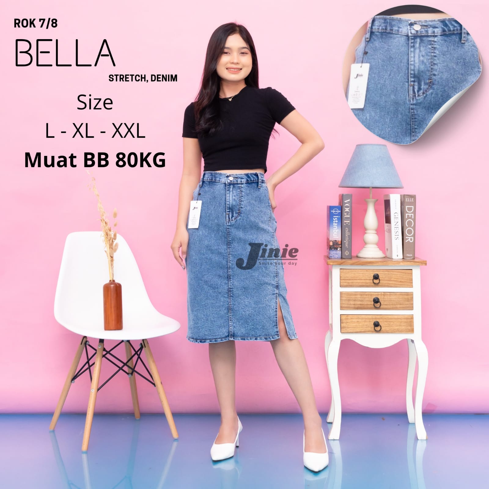 Rok Pendek Skrit 7/8 Bella Stretch Rok Jeans Pendek Korea Jumbo