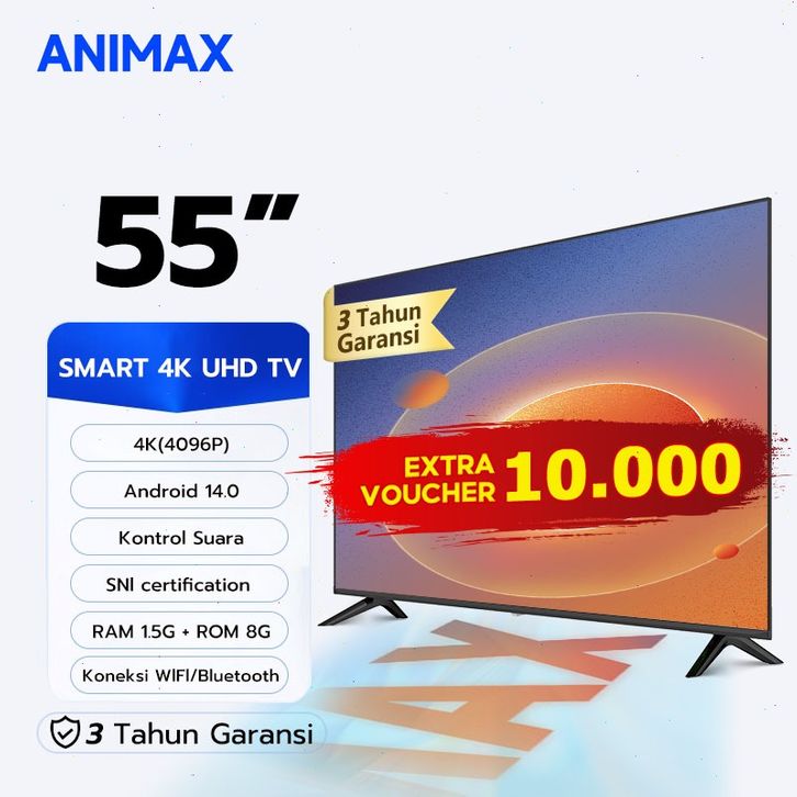 [4K Google TV]Animax Smart 55 inch TV Digital Smart Android 14.0- 4K UHD-Dolby Audio-Youtube-Kontrol suara