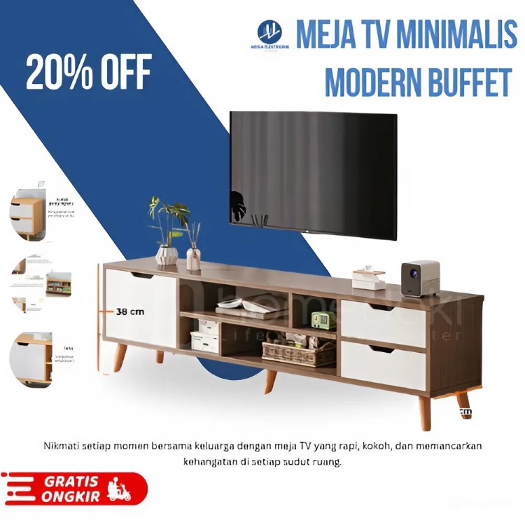 Meja TV Minimalis Modern Buffet TV Minimalis Nordic Rak Lemari TV Kayu MDF Kabinet Buffet Furniture Multifungsi G1B1