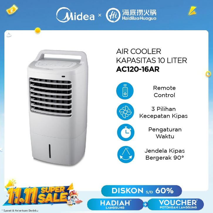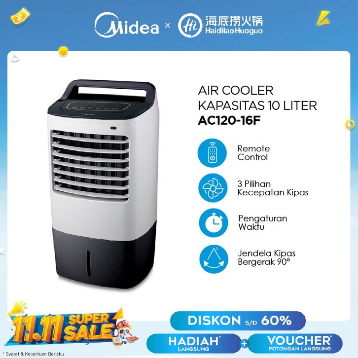 [HADIR KEMBALI] Midea Air Cooler 10L 3 Fan Mode with Remote & Angle 90 Derajat - Model AC120-16AR/AC120-16F | Humidifier