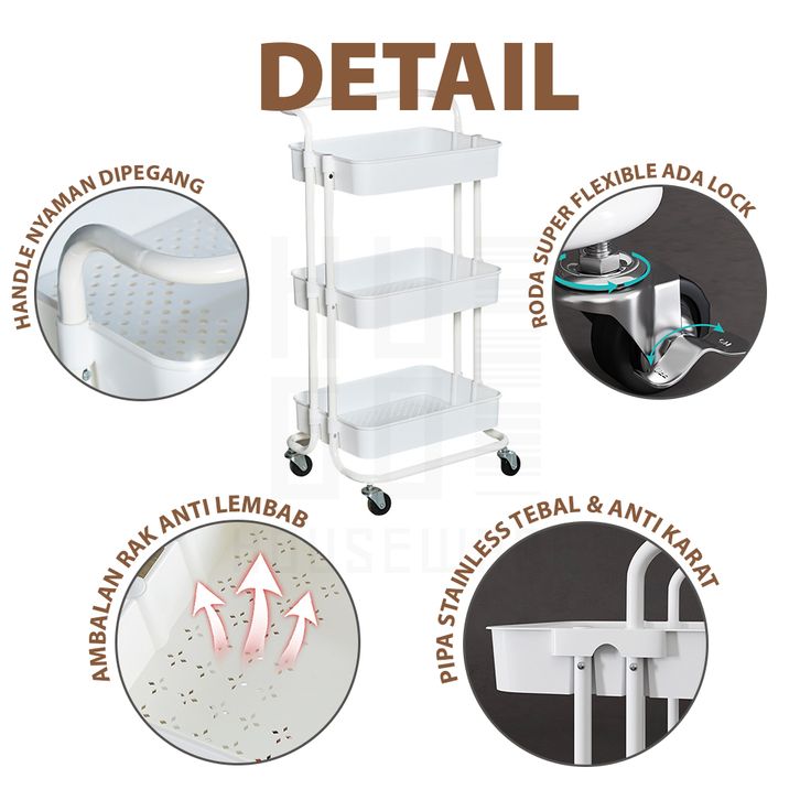 Rak Dapur Dorong Rak Troli Susun Serbaguna Roda Pegangan Rak Troli Minimalis Tahan Lama Kokoh Mudah Dipindahkan
