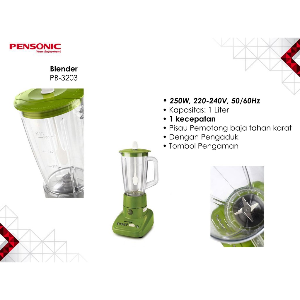 PENSONIC BLENDER JUICER BUAH KAPASITAS 1 LITER 250W PB-3203
