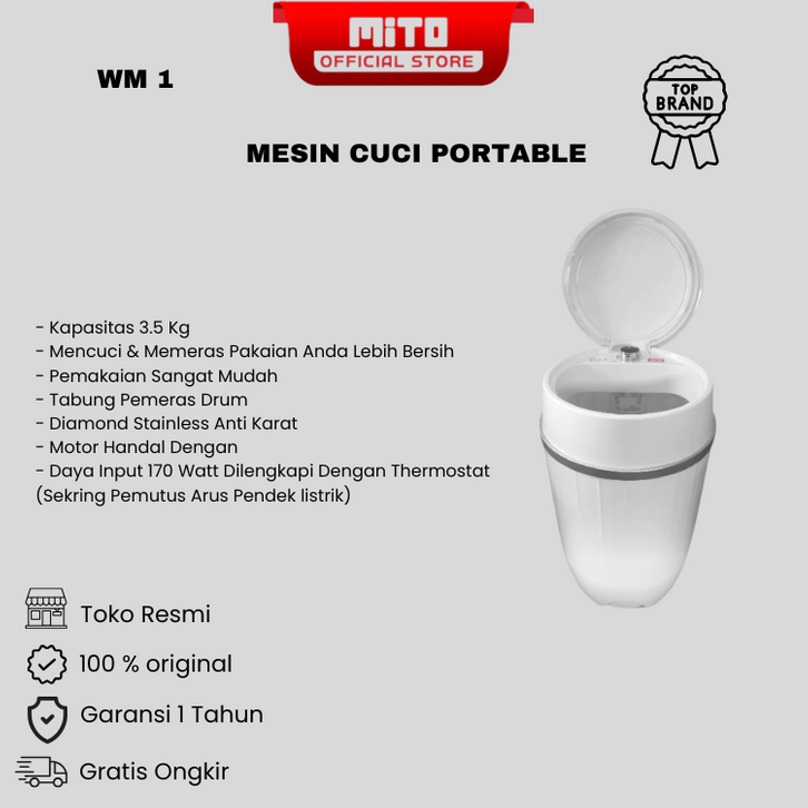 MESIN CUCI MITO MINI PORTABLE 3.5 KG WM1 MURAH ORIGINAL TERLARIS TERBARU