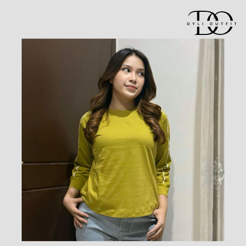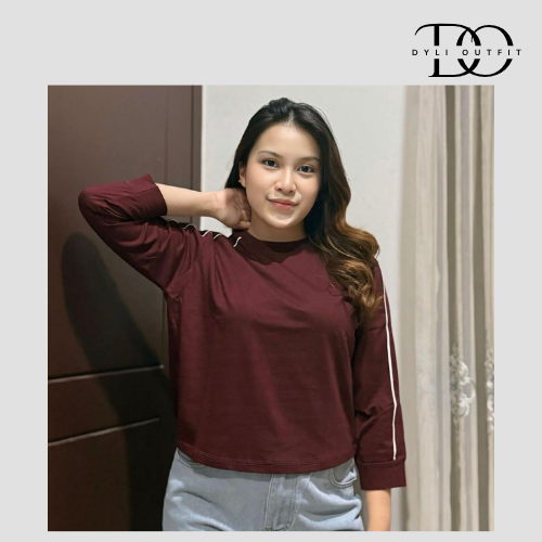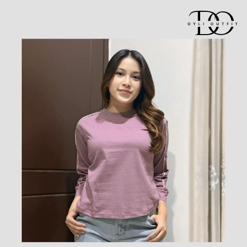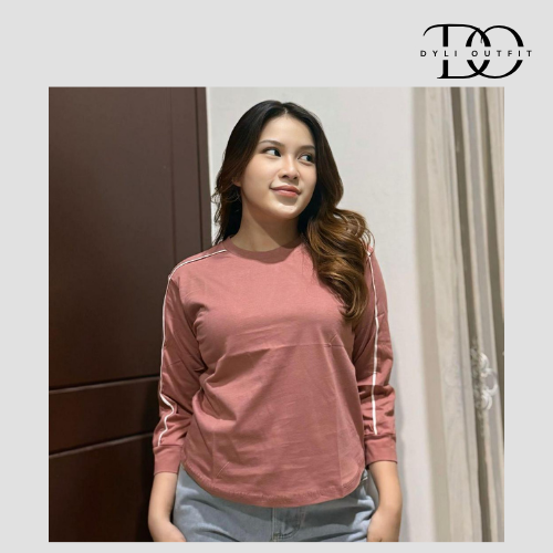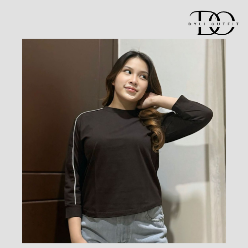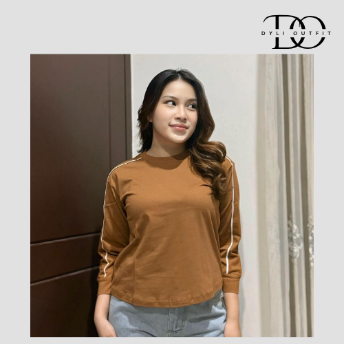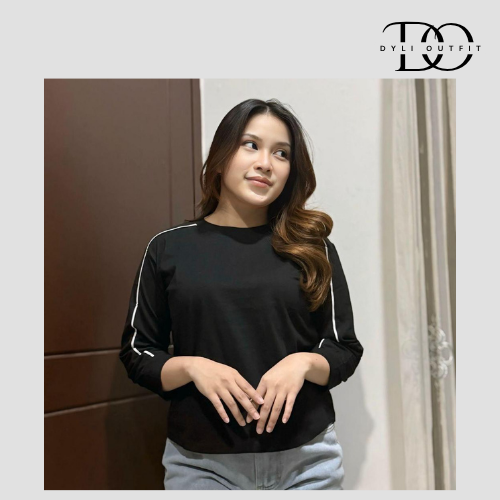 Baju Atasan Wanita Lengan Panjang Variasi Lis Lengan Bahan Cotton Combed - ZEEROKS